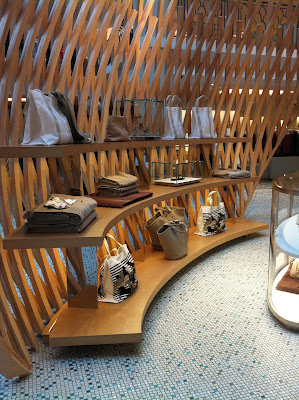 Had to check out the new Hermès Store on the Left Bank. All I can say is WOW! It's the most beautiful store with the coolest wood sculptures and on top of it they have a florist, a café and a chic book store inside. The building housed the original pool for the Lutétia Hotel and then later was the offices of the clothing designer Dorotheée Bis. I remember going there in the 90's with Charles Gallay for a fashion show to work an appointment.Here's a few snapshots as I was trying to be discreet!